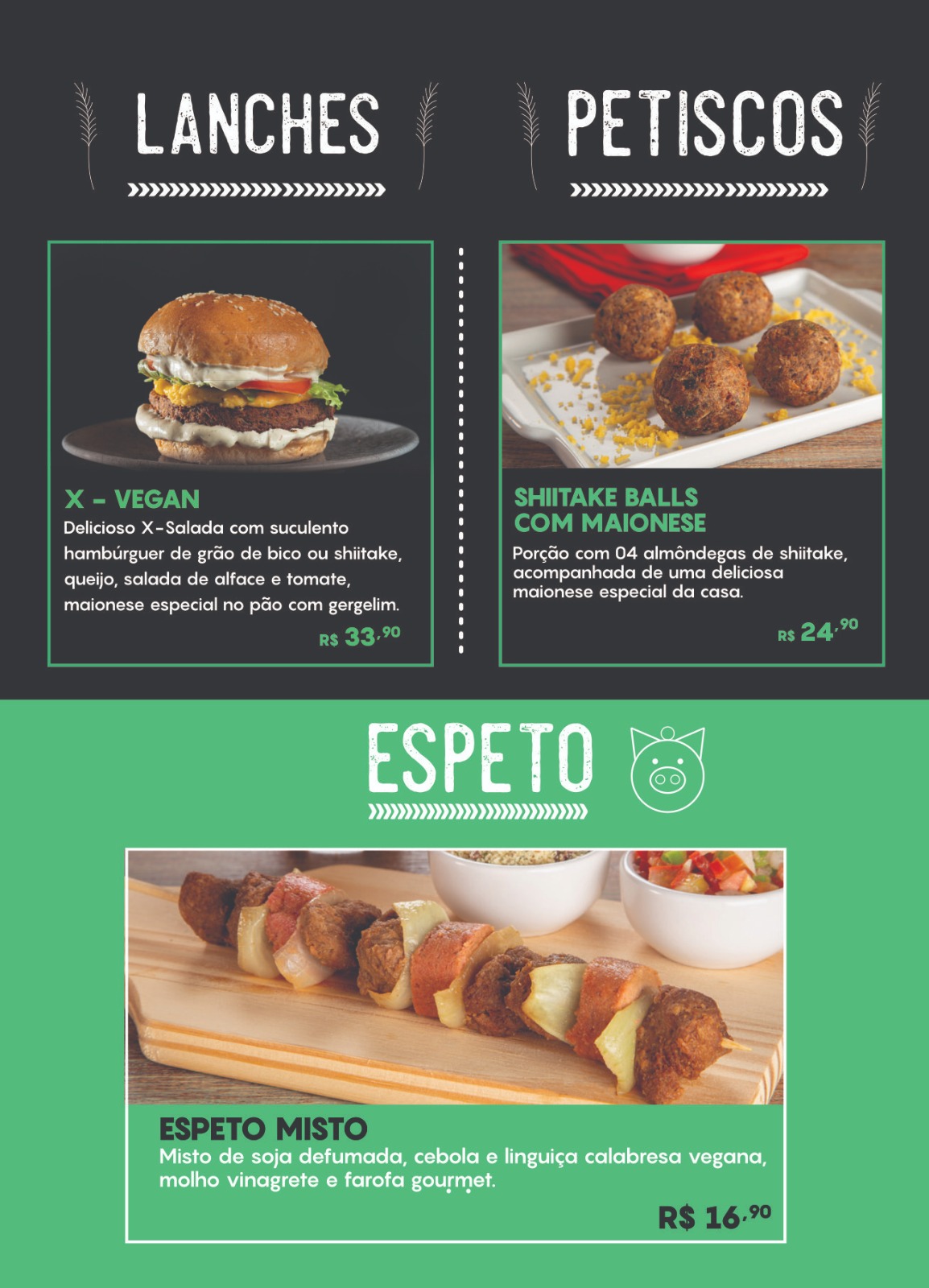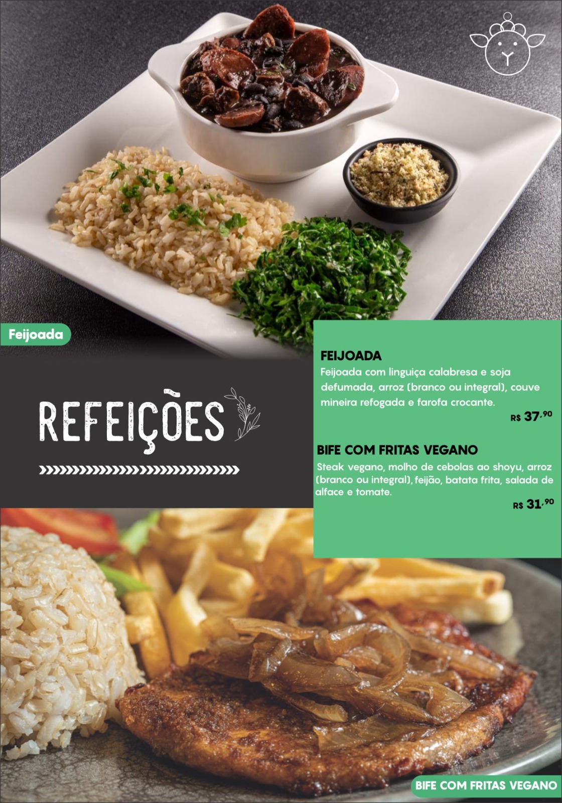Reimaginamos pratos tradicionais como opções veganas, destacando nossa icônica coxinha de jaca e a clássica feijoada. O novo design reflete um ambiente descolado e moderno, equilibrando sofisticação e descontração. Situado em R. Prudente de Morais, 167 – Ipanema, nossa proposta visual captura a essência inovadora da culinária vegana em um dos bairros mais vibrantes do Rio de Janeiro.